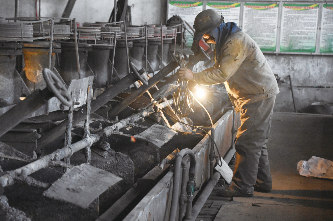 柳园古堡泉金属精选有限责任公司选矿车间,工人检修设备。