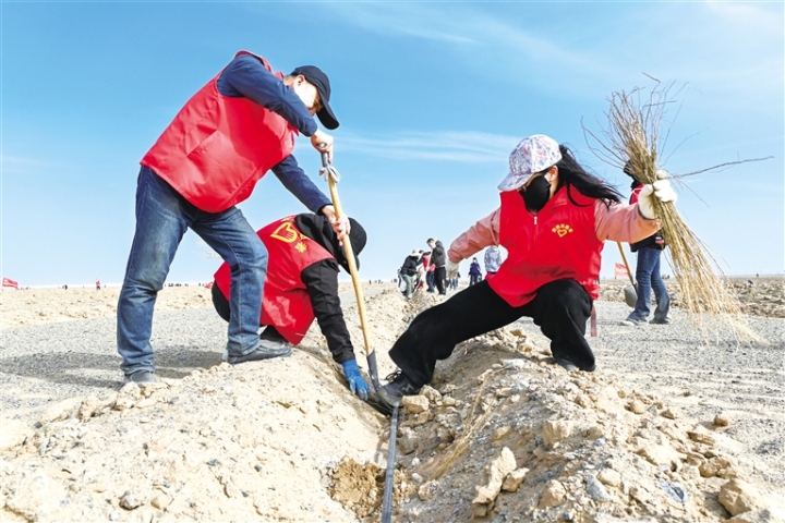春风十里 共添新绿——酒泉市及肃州区机关干部开展义务植树活动见闻
