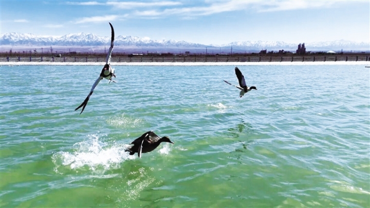 敦煌党河湿地:水鸟翩飞 清波荡漾