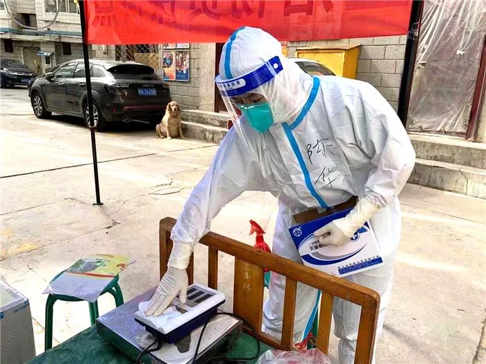 穿好防护服,带好物资,我和同事前往分包的小区。小区门口挂着“高风险区”的字牌,我们从未退缩。该小区是老旧小区,楼高8层,没有电梯,住户大多为老人。4个多小时,我们穿行在每个单元,不知不觉爬了一百二十几层楼梯。
