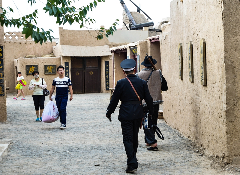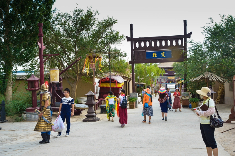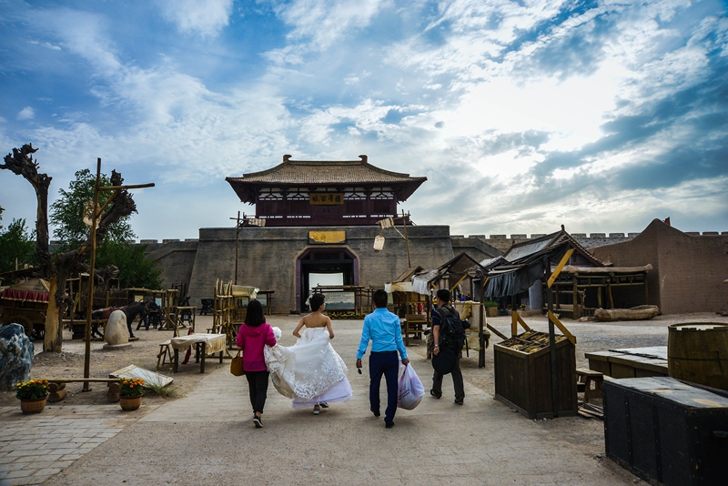 7月29日,一拨又一拨的游客来到古郡敦煌知名的大漠影视城——敦煌古城拍婚纱、玩古装,骑马、射箭、坐大轱辘车,尽情体验在仿宋沙州古城穿越了时代的情调和韵味。