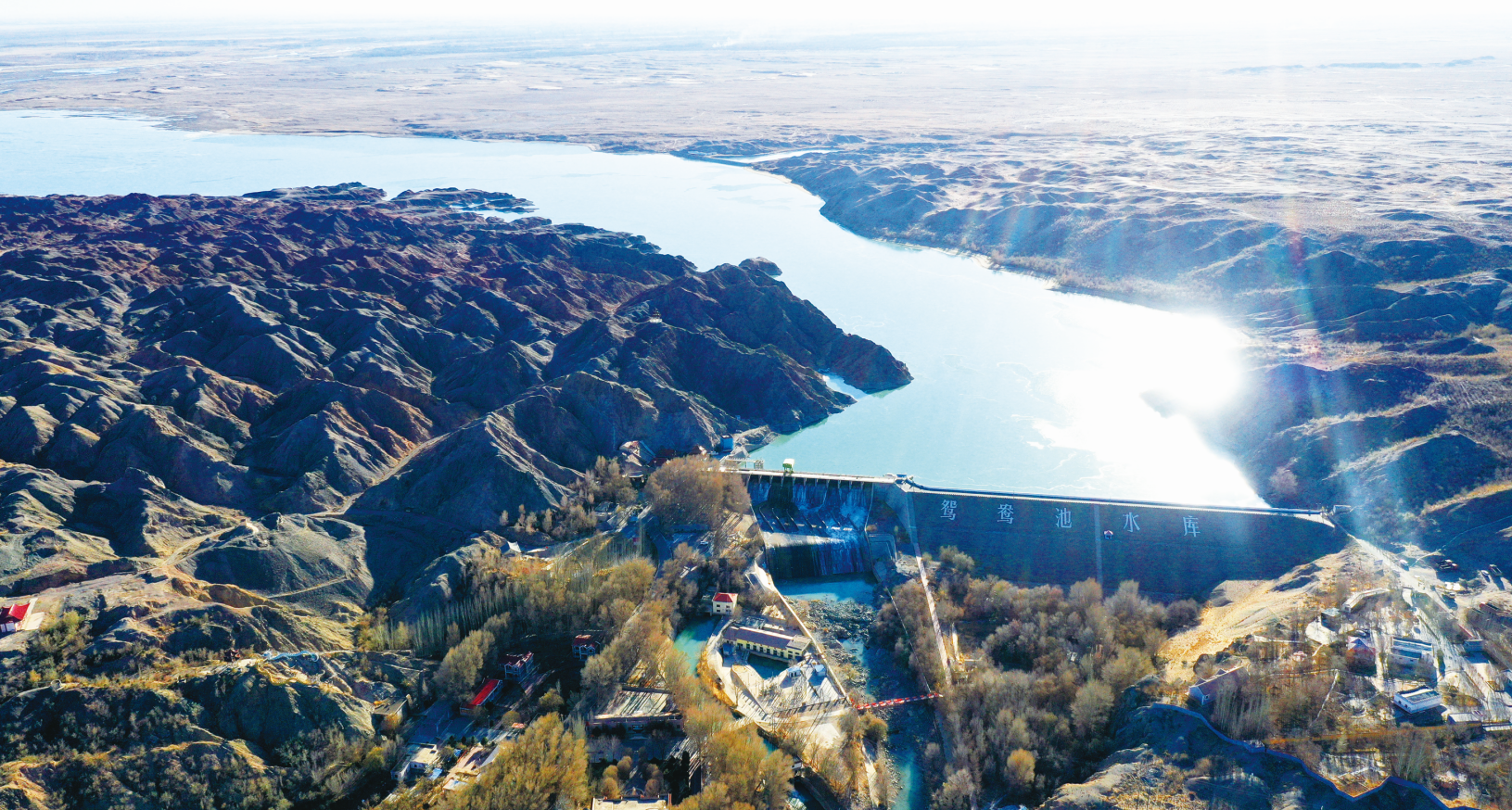 图为冬日的鸳鸯池水库