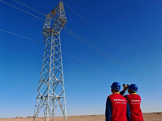 国网肃北县供电公司工作人员在辖区开展线路巡视测温工作,全力保障节假日期间安全稳定用电。