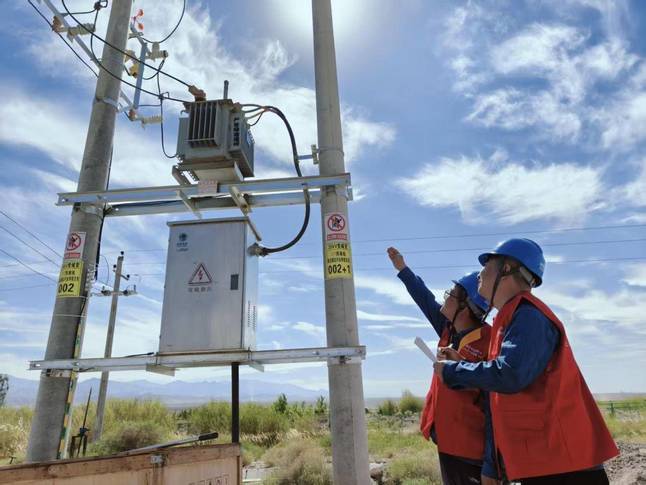 国网酒泉市肃州区供电公司工作人员对辖区线路进行巡视,保证节日期间用电稳定可靠。