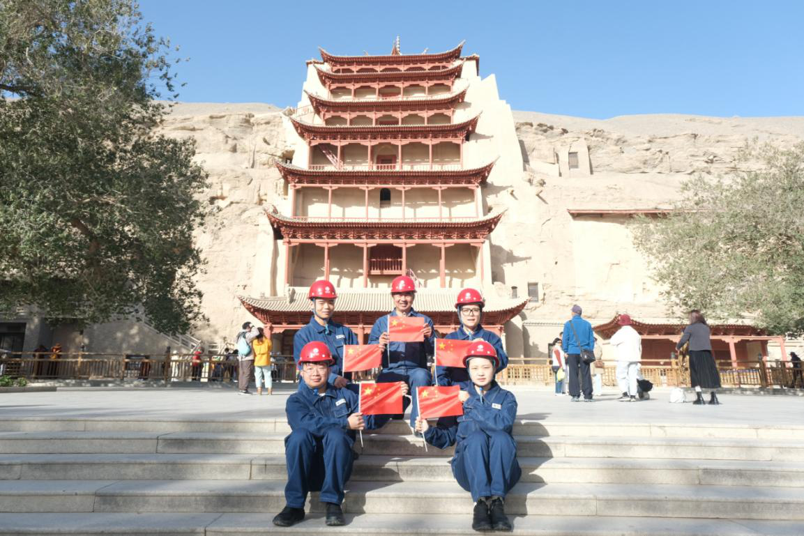 国网敦煌市供电公司工作人员祝福伟大祖国繁荣昌盛、国泰民安。