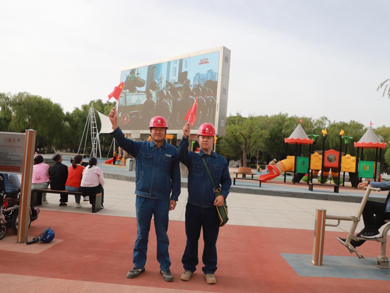 国网玉门市供电公司工作人员在辖区广场对周边线路开展重点巡视,祝祖国生日快乐!