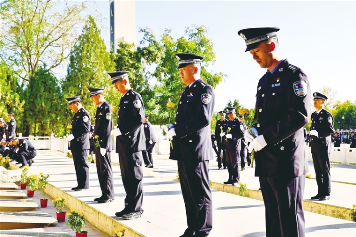 秋阳和煦,警徽闪耀。酒泉边境管理支队与酒泉市公安局肃州分局的民警整齐列队,依次向陵园的英烈墓碑献花。“站在这里,我深刻体会到今天的美好生活是先辈用生命换来的。”酒泉市公安局肃州分局特巡警大队教导员王增军说,“从部队到公安,我干了32年。我将继续努力在工作岗位上为祖国和人民作贡献。”