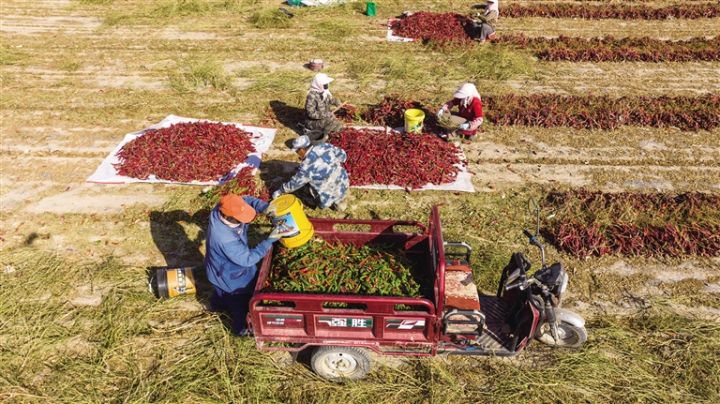 连日来,肃州区下河清镇玉米、辣椒、甜叶菊等农作物进入收获期,田间地头人头攒动,处处呈现丰收的忙碌景象。