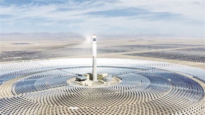 戈壁滩上,上万面“超级镜子”在秋日阳光下熠熠生辉,它们将太阳光聚集到中央的吸热塔上,将熔盐加热后把能量储存起来——即使在漫长的夜晚,也能持续发电。