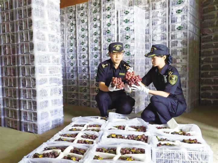 为保障敦煌葡萄顺利出口,敦煌机场海关充分发挥业务骨干引领作用,全面解读农产品准入标准,组织“青年突击队”深入田间地头开展现场办公,为企业提供面对面的政策宣讲。此外,海关还设立鲜活易腐农食产品属地查检绿色通道,提供优先查检和“5+2”预约查检服务,保障葡萄快速通关、保鲜出口。