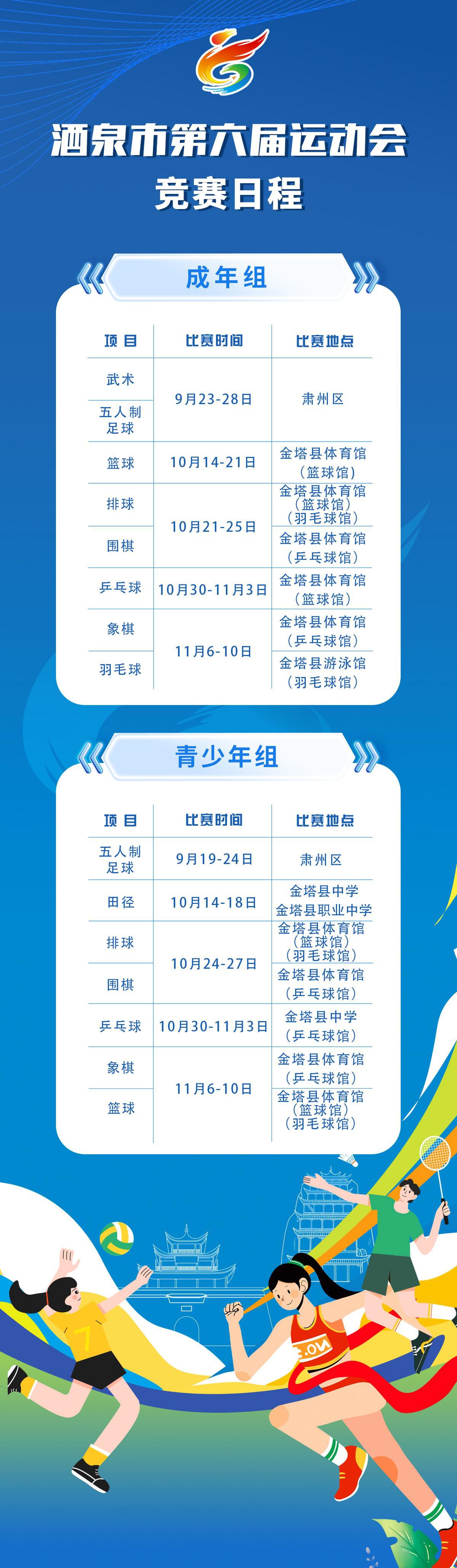 【聚焦市六运会】收藏!酒泉市第六届运动会竞赛日程来了
