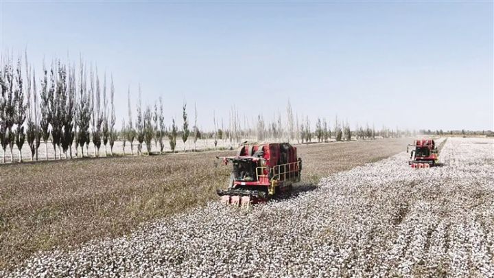 近期,瓜州县33.94万亩棉花迎来采收季。广袤的棉花田里,大型采棉机在“白色的海洋”中轰鸣穿行,勾勒出现代科技赋能农业高质量发展的丰收图景。