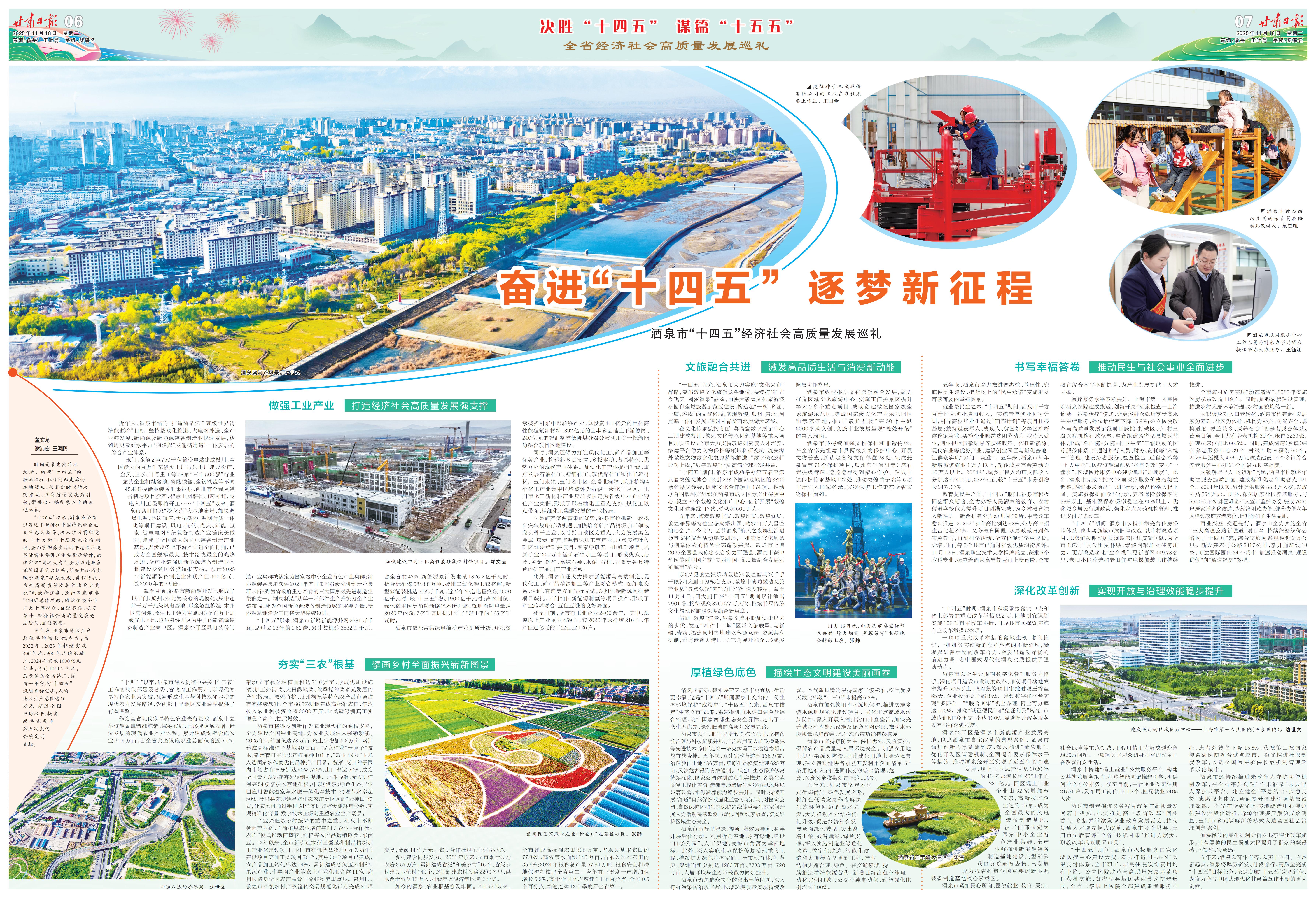 时间是最忠实的记录者。回望“十四五”的壮阔征程,位于河西走廊西端的酒泉,乘着新时代的浩荡东风,以高质量发展为引领,擘画出一幅气象万千的奋进画卷。