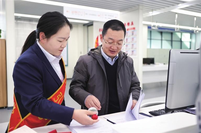 酒泉市政务服务中心工作人员为前来办事的群众提供帮办代办服务。王钰涵