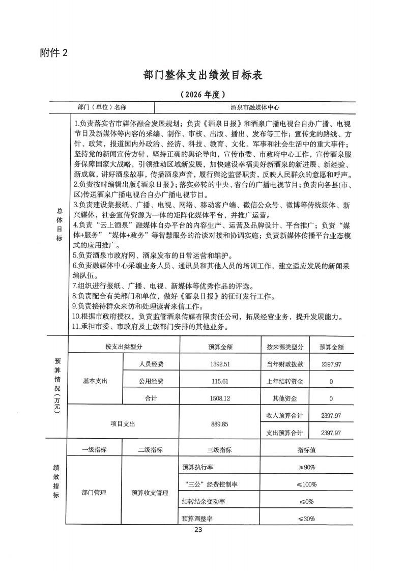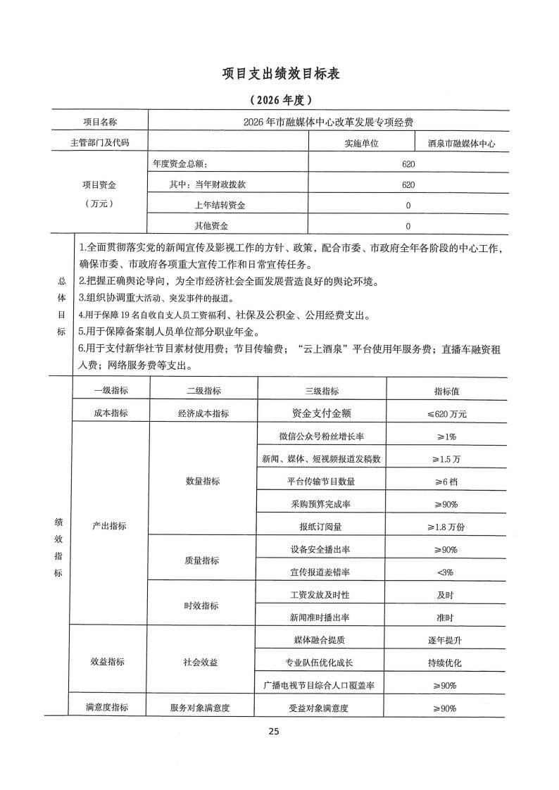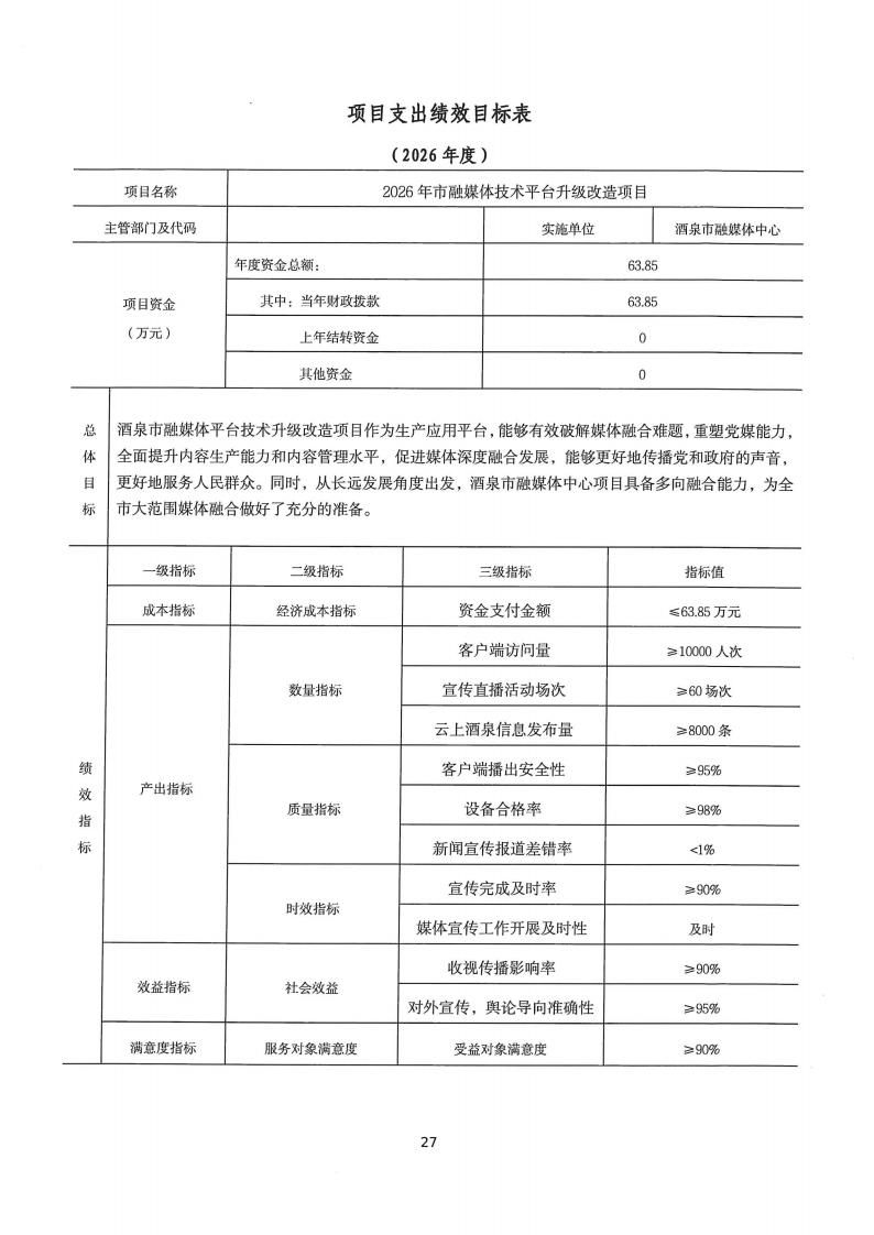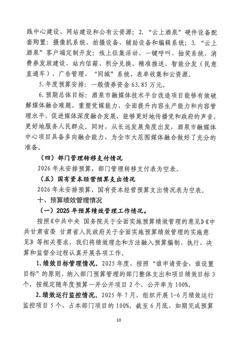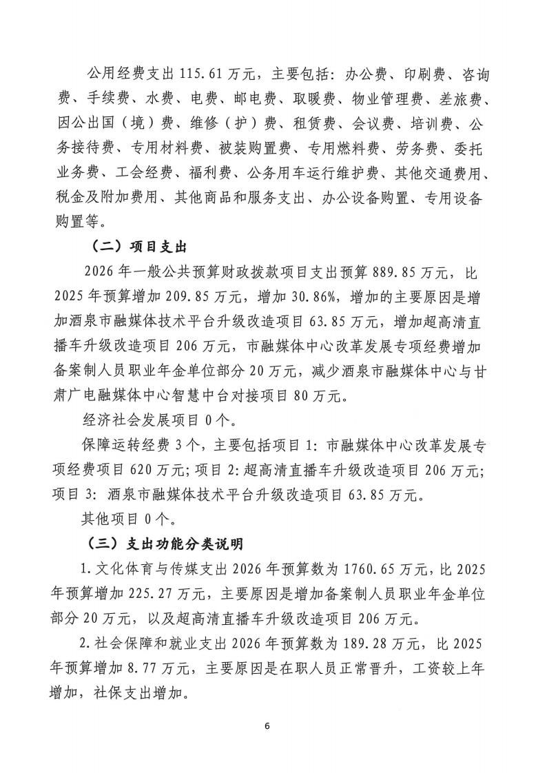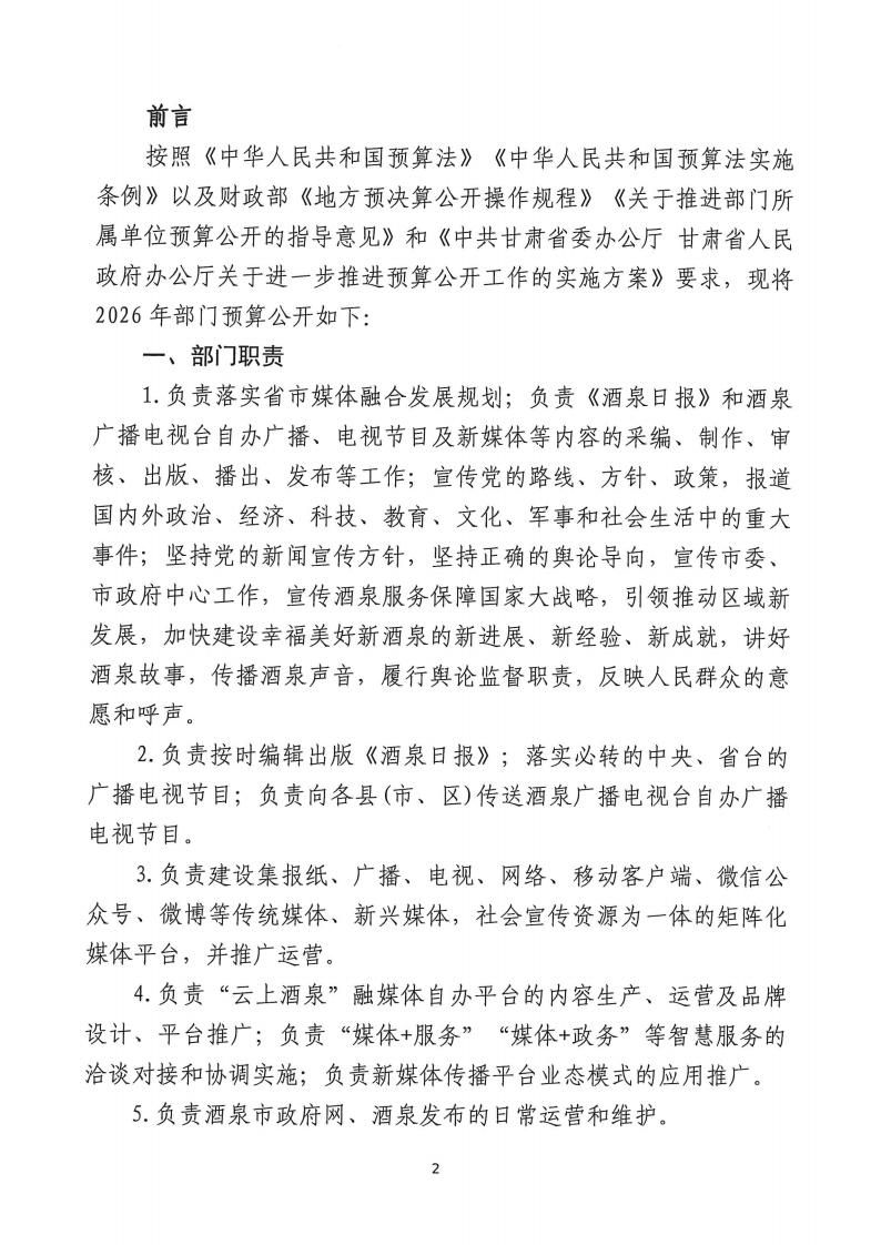 酒泉市融媒体中心2026年部门预算公开情况说明