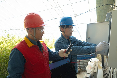 巡检现场,工作人员手持红外测温仪和钳形电流表,对大棚配电箱、电缆接头、温控及灌溉设备进行全面检查,重点排查线路绝缘老化、接头发热、开关松动等隐患。为应对恶劣天气,公司启动“电力+气象”应急协同机制,提前获取预警信息,动态调整巡视频次,并对营泉村大棚集中区供电线路开展“无人机巡检+人工特巡”。同时组建应急抢修小队,与种植户建立“点对点”联络机制,确保突发事件快速处置。